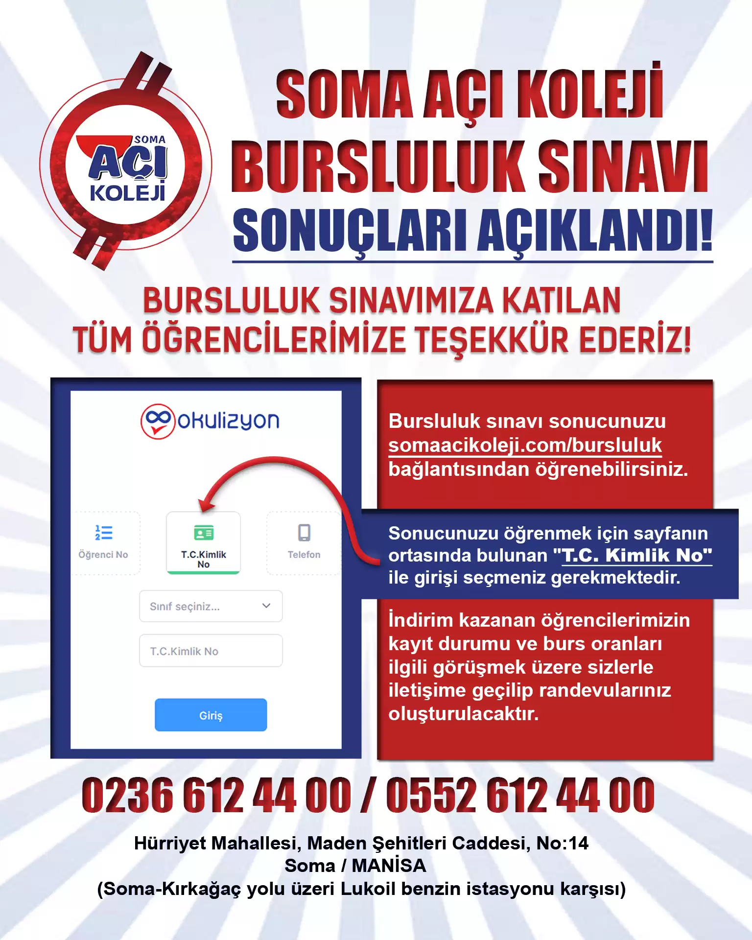 SOMA AÇI KOLEJİ BURSLULUK SINAVI BAŞVURULARI BAŞLADI